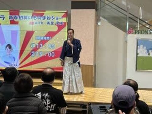 今日13時と15時からピオニーウォークで、「清水アキラ新春初笑いものまねショー」というライブがあった。ミーハーな私と妻は、12時30分にそのステージ前の立ち見の席にいた。昨日川越を歩き続けたので、立って30分待つのは辛かった。それだけで足が棒のよう…